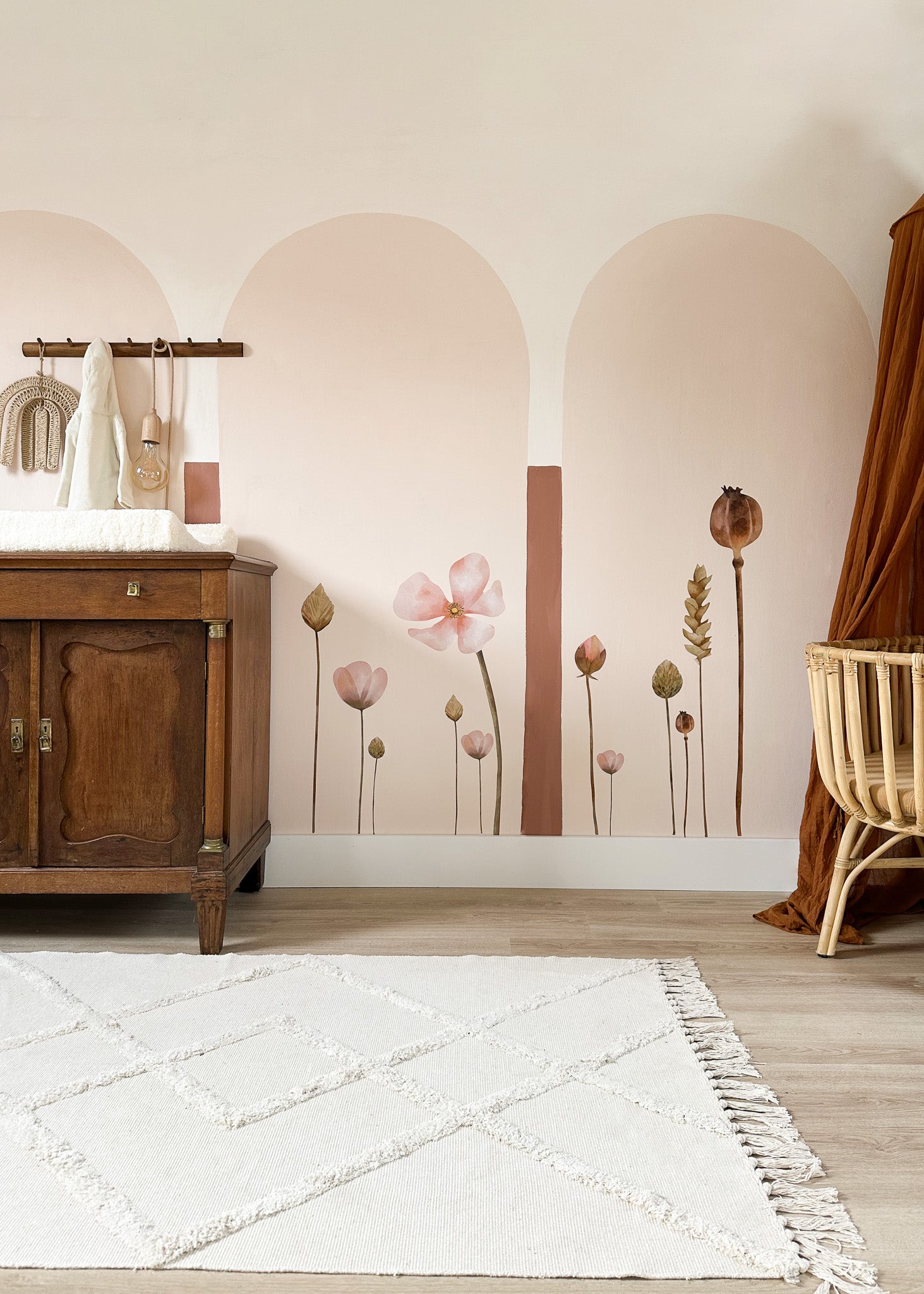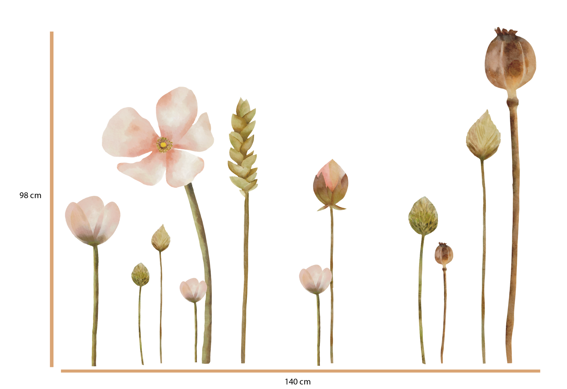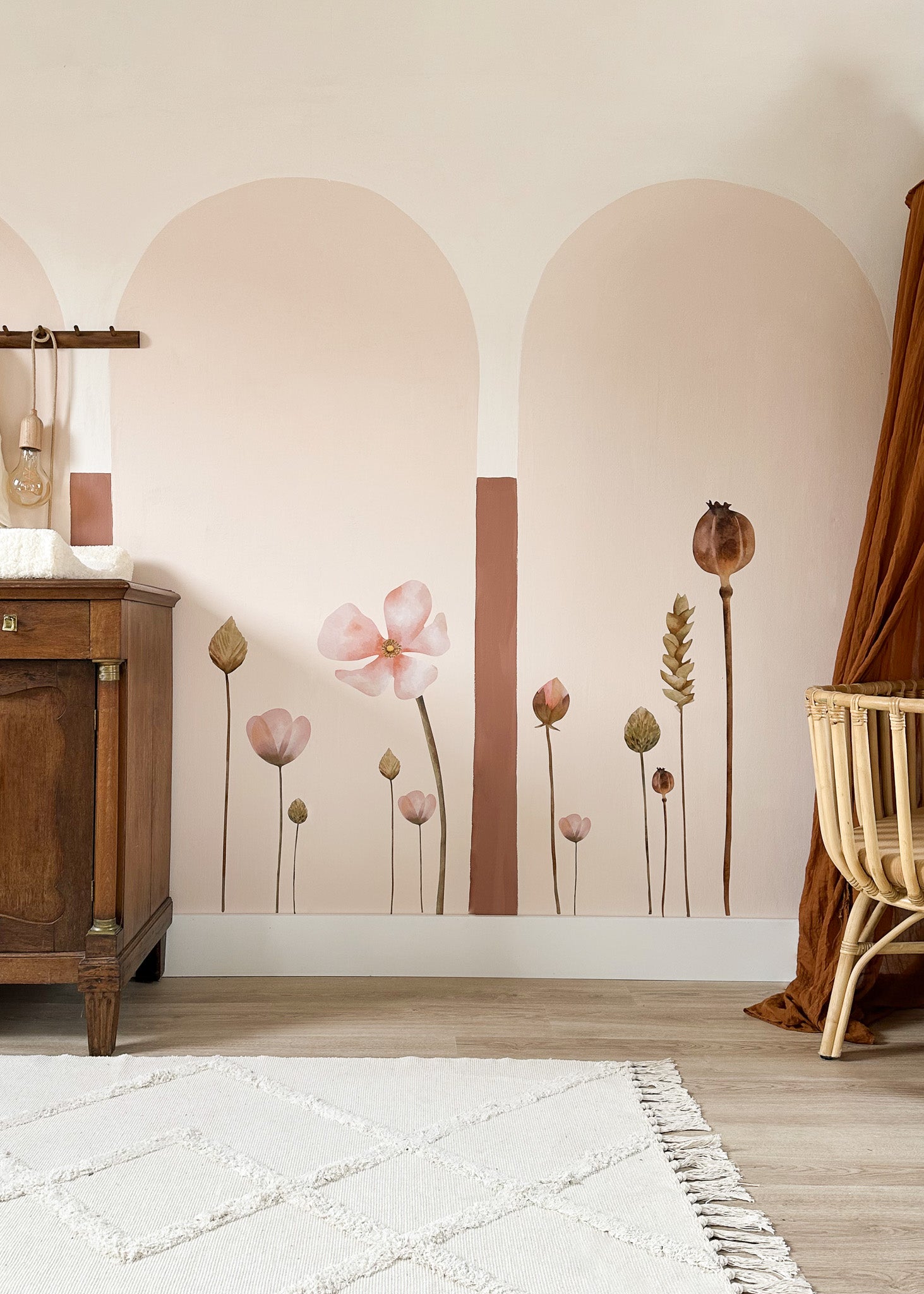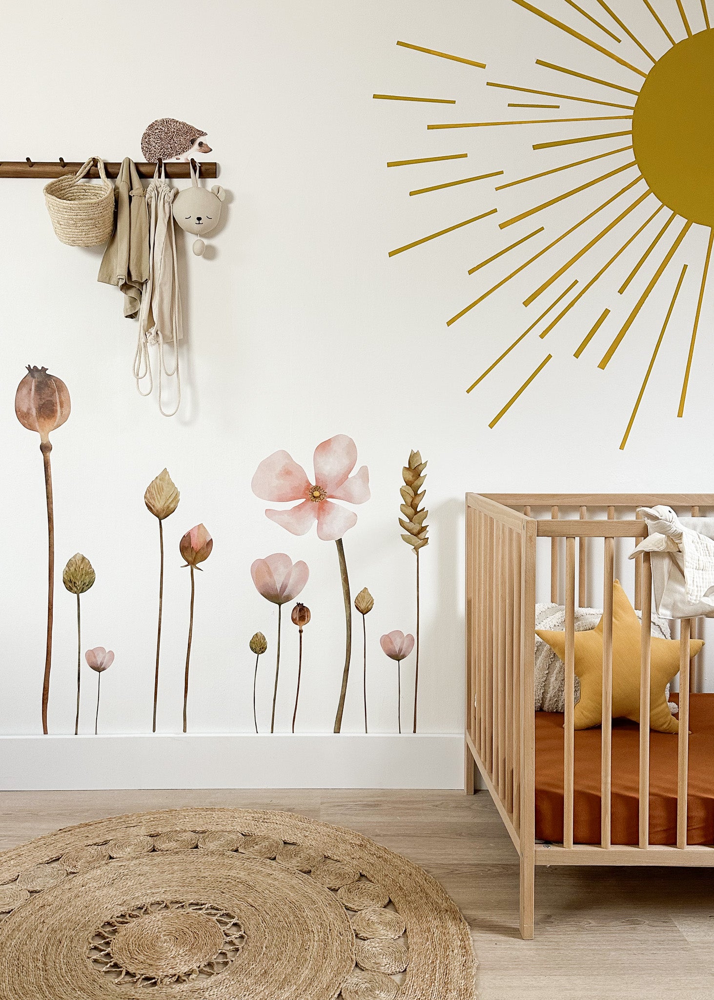 Creëer een warme en knusse sfeer in de babykamer of kinderkamer met deze set bloemen. Iedere bloem is een aparte sticker, dus je kunt er geheel je eigen creatie van maken. De afbeelding geeft je genoeg inspiratie nietwaar?